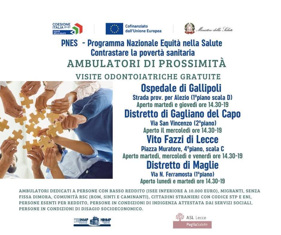 Prosegue il Progetto PNES- Programma Nazionale “Equità nella Salute “ 2021-2027 area di intervento Contrastare la povertà sanitaria che ha l’obiettivo di favorire l’accesso ai servizi sanitari e sociosanitari per